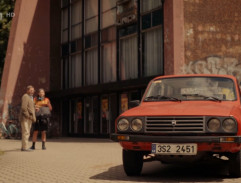 Herec Bořivoj Vojan nevěřícně zírá na auto, kterým ho má Matyáš odvézt na oběd.